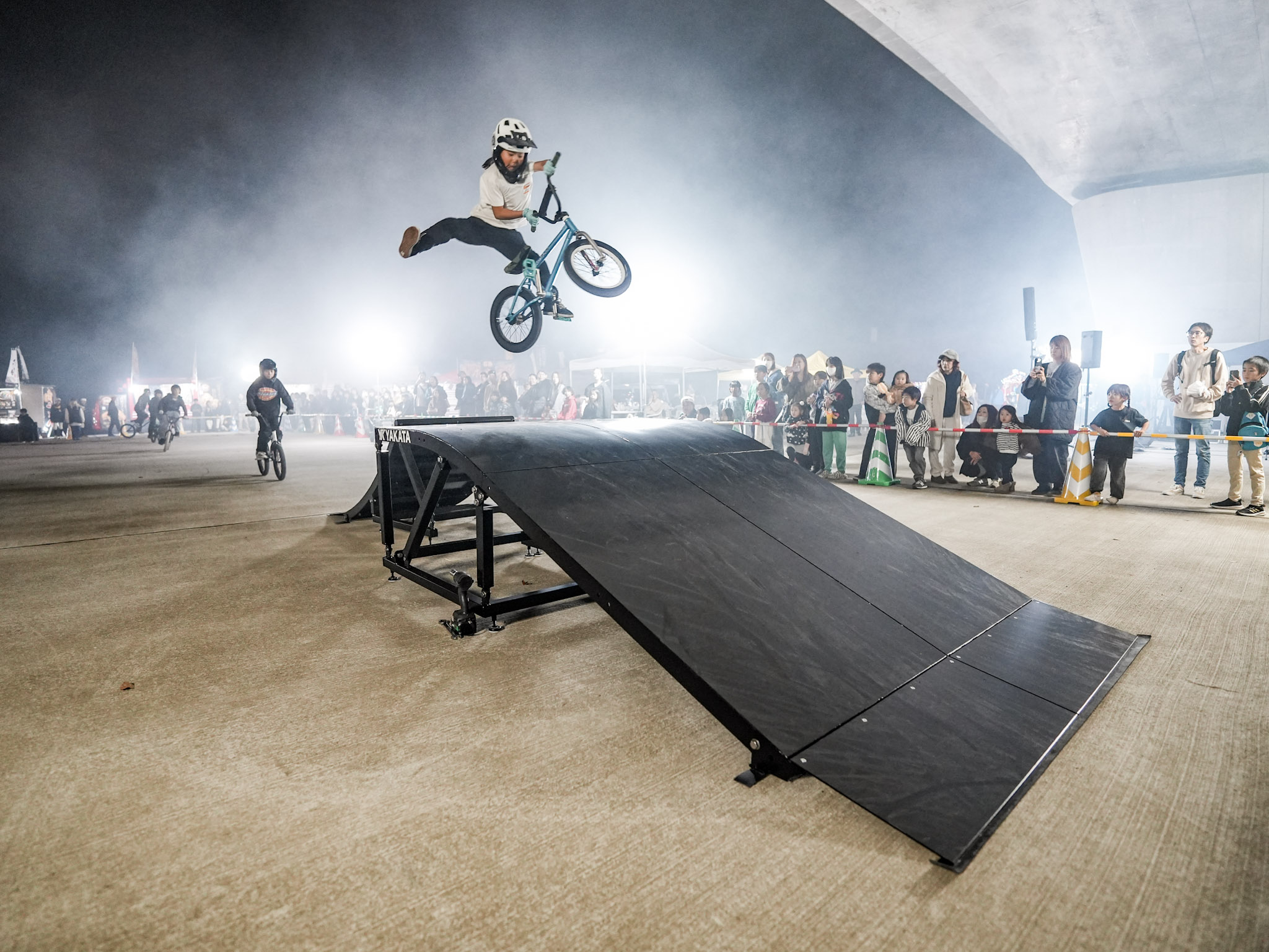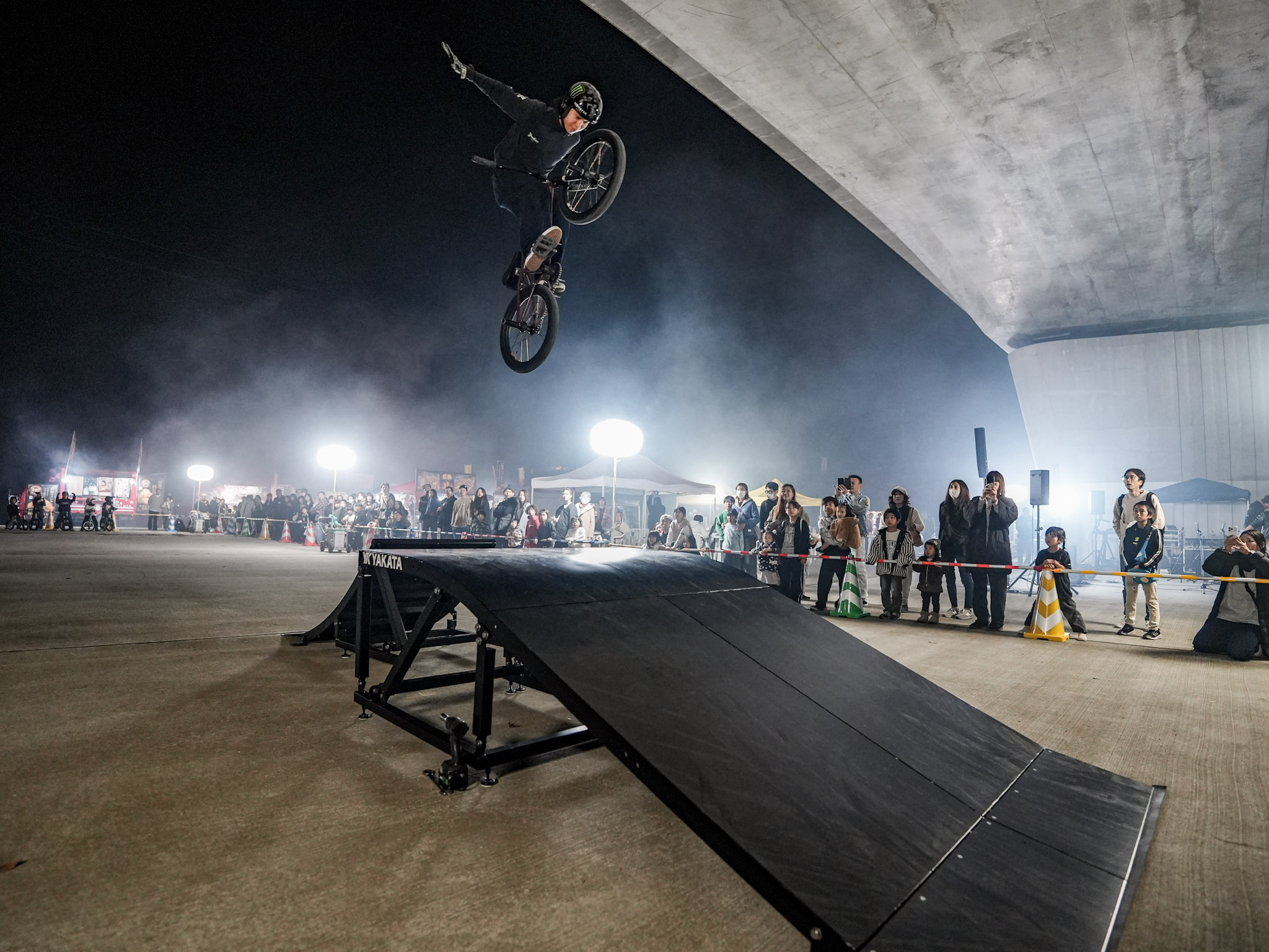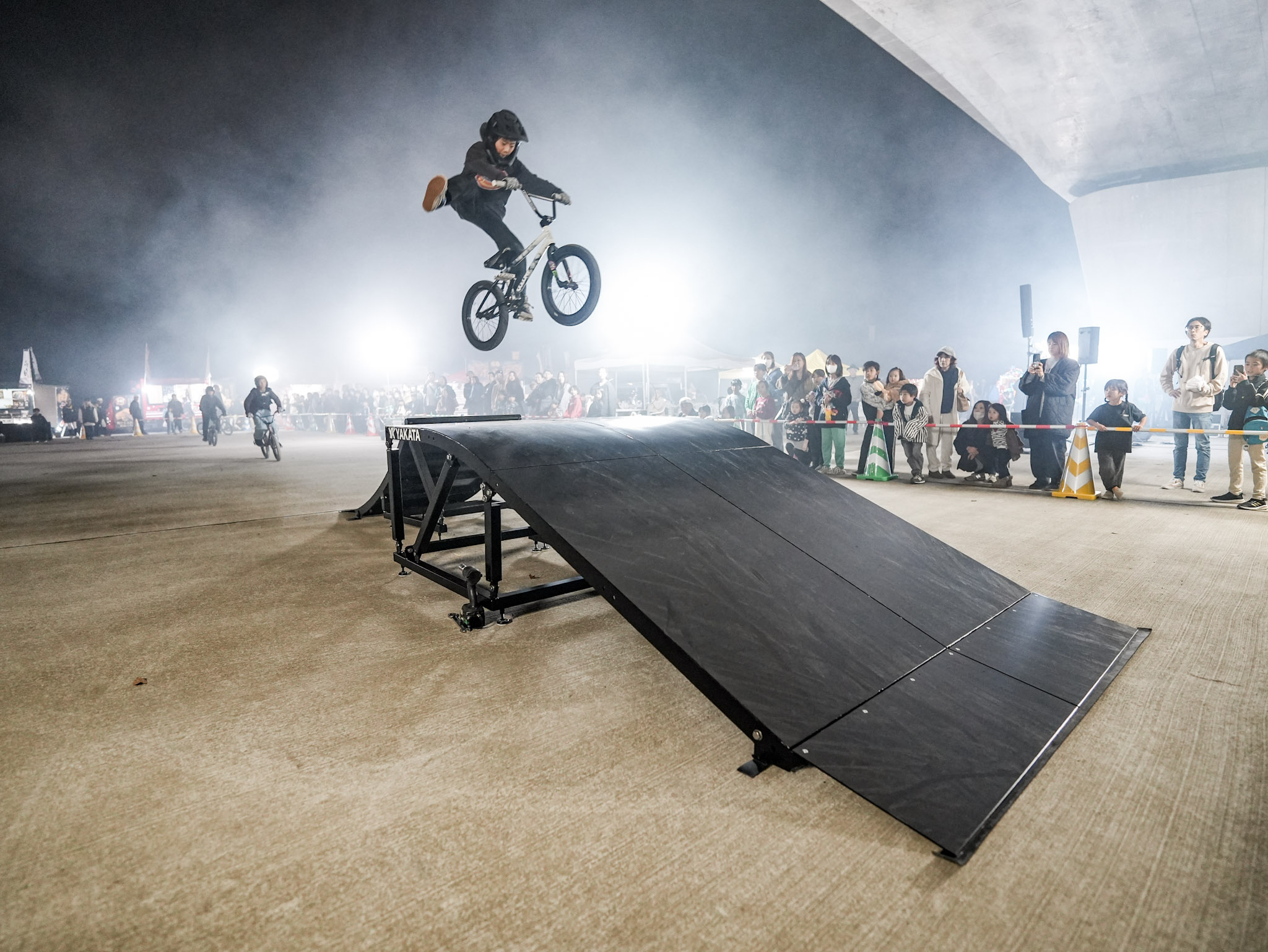 みやま市で開催されたみやマルシェ2023にてBMXショーケース&BMX体験会を行いました。YAKATAイベントセクションの設置とショーケース運営、体験会用自転車を準備し体験会を実施しました。